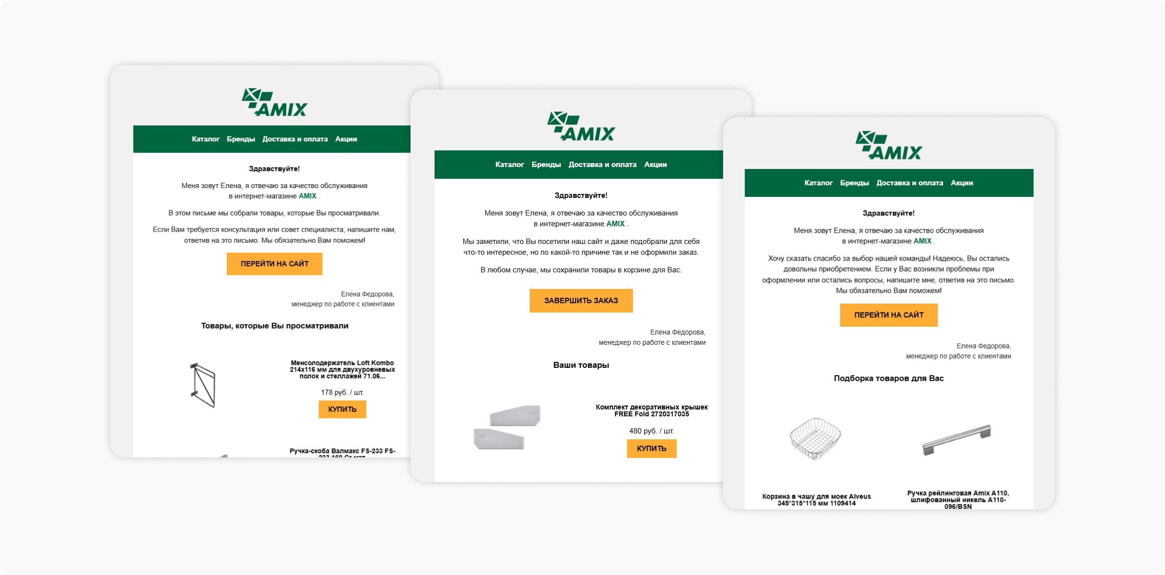 Письма уходили тем, кто смотрел товар, но не добавил его в корзину, и возвращали пользователей к просмотрам, чтобы довести до покупки.